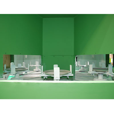 SP SB 6 is a multi satellite type blasting machine with continous production output. The machine comes with 6 satellite tables accommodated on a larger turntable with automatic rotation arrangement for both the tables. The machine is ideally suitable for large production jobs/ The machine comes with automatic blasting and air washing of jobs. Aluminum oxide is ideally suitable blasting media to be used in these machines. The machines are aptly suited for Non Stock Cookware blasting before teflon coating. The machine can be supplied with HMI and PLC controls.